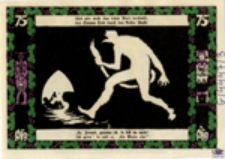 cała seria opatrzona poszczególnymi zwrotkami wiersza Augusta Kopischa: ; 1. Auf Schlesien Bergen, da wachst ein Wein der braucht nicht Hitze, nicht Sonnenschein; Obs Jahr ist schlecht, obs Jahr ist gut, Da trinkt man frohlich der Traube Blut. ; 2. Da lag ich einmal vorm vollen Fass, "Ein anderer soll mir trinken das!" So rief ich, "und solls der Teufel sein, ich trink ihn nieder mit solchem Wein!" ; 3. Und wie noch das letzte Wort verhallt, des satans, Tritt durch den Keller schallt. "He, Freund, gewinn ich, so bist du mein! Ich gehe". So ruft er, "die Wette ein!" ; 4. Wir trinken beinah die halbe nacht da wurde manch Kruglein leer gemacht: ; 5. Da lallte der Teufel: "He, Kamerad, Beim Fegefeuer! Jetz hab ichs satt!" ; 6. "Ich trank vor hundert jahren in Prag mit dem Studenten dort Nacht und Tag och mehr zu trinken solch sauren Wein musst ich ein geborener Schlesier sein!" ; awers: w środku herb miasta, z lewej strony napis "Tuchweberei" i tkalnia sukna, z prawej strony napis "Weinebau" i beczka z winem; kolor żółto-zielono-niebieski ; rewers: trzecia zwrotka wiersza Augusta Kopischa, wizerunek szatana, kolor zielono-czarno-biały ; notgeld emitowany przez Magistrat m. Grünberg ; 100 mm - 70 mm