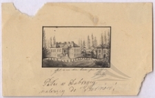 rysunek tuszem ; 9,8 x 15,7 ; w prawym dolnym i lewym górnym rogu ubytki papieru ; u dołu rysunku dedykacja po francusku: ofiarowane mojej drogiej Louise przez jej przyjaciółkę Cordelie