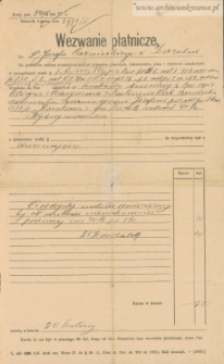 Wezwanie płatnicze do uregulowania podatku od kontraktu darowizny ziemi przez Maryannę z Malinowskich Czerniecką dla syna Józefa. ; 25 października 1904 - Brody