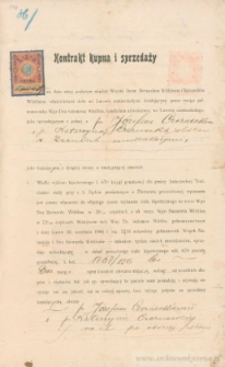 Czerniecki, Józef (1859-1931) ; Czerniecka, Katarzyna (z d. Hasij) ; Wittlin, Bernard ; Wittlin, Nataniel ; Wittlin, Salomon ; Nartowski, Bronisław (notariusz) ; umowa kupna-sprzedaży ; Lwów ; Złoczów ; Trościaniec Mały