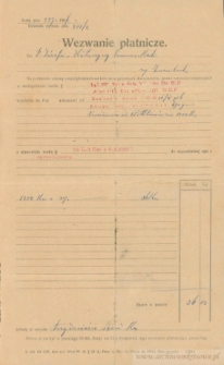 Wezwanie płatnicze do uregulowania podatku od kontraktu kupna ziemi przez Józefa i Katarzynę Czernieckich (wpisano błędnie Czarnieccy). ; 28 lutego 1907 - Złoczów