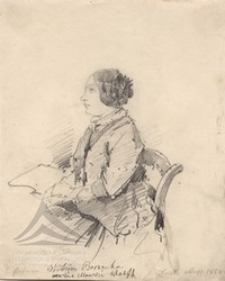 rysunek ołówkiem ; 20 x 16 ; w prawym dolnym rogu data: Dresno Marz. 1850 ; w lewym dolnym rogu podpis: C. Dofman lub Dotman ; u dołu póxniejszy dopisek po franc.: Wiktoryna Borzęcka żona Maurice'a Wolff'a