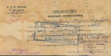 Czerniecki, Andrzej (syn Józefa; 1888-1958) ; zaświadczenie weterynaryjne ; Łuka (gmina) ; Złoczów (powiat) ; Lwów