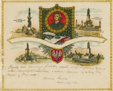 Września, maj 1927 ; Telegram patriotyczny z życzeniami dla jubilatów ; Zwyczaj wysyłania ozdobnych telegramów gratulacyjnych należy datować na 1884 rok, czyli na stulecie powstania kościuszkowskiego (na pierwszych drukach pojawił się wizerunek Tadeusza Kościuszki, dlatego były one zwane telegramami kościuszkowskimi). ; Pierwsze edycje miały miejsce w Krakowie, ale szybko inicjatywę przejęli poznaniacy, zwłaszcza związani z Towarzystwem Czytelni Ludowych w Poznaniu. ; Były to kolorowe blankiety o tematyce patriotyczno-historycznej do życzeń świątecznych, narodowych, rodzinnych, osobistych. ; Na blankietach prezentowano widoki miast m.in. Poznania, Krakowa, Gniezna oraz godło, herby i inne symbole narodowe. ; Ideą kolportowania tych telegramów o niezwykłym ładunku treści patriotycznych zawartych w ilustracjach i napisach, było zdobywanie funduszy, głównie na walkę o niepodległość z zaborcami oraz na oświatę. ; Cena tych telegramów znacznie przewyższała cenę zwykłych urzędowych formularzy (jeden telegram kosztował 25 fenigów). ; Początkowo drukowano je w zakładzie litograficznym Antoniego Rose w Poznaniu.