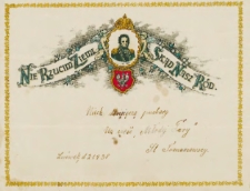 Lwówek, 21.4.30 ; Telegram patriotyczny z życzeniami dla młodej pary ; Zwyczaj wysyłania ozdobnych telegramów gratulacyjnych należy datować na 1884 rok, czyli na stulecie powstania kościuszkowskiego (na pierwszych drukach pojawił się wizerunek Tadeusza Kościuszki, dlatego były one zwane telegramami kościuszkowskimi). ; Pierwsze edycje miały miejsce w Krakowie, ale szybko inicjatywę przejęli poznaniacy, zwłaszcza związani z Towarzystwem Czytelni Ludowych w Poznaniu. ; Były to kolorowe blankiety o tematyce patriotyczno-historycznej do życzeń świątecznych, narodowych, rodzinnych, osobistych. ; Na blankietach prezentowano widoki miast m.in. Poznania, Krakowa, Gniezna oraz godło, herby i inne symbole narodowe. ; Ideą kolportowania tych telegramów o niezwykłym ładunku treści patriotycznych zawartych w ilustracjach i napisach, było zdobywanie funduszy, głównie na walkę o niepodległość z zaborcami oraz na oświatę. ; Cena tych telegramów znacznie przewyższała cenę zwykłych urzędowych formularzy (jeden telegram kosztował 25 fenigów). ; Początkowo drukowano je w zakładzie litograficznym Antoniego Rose w Poznaniu.