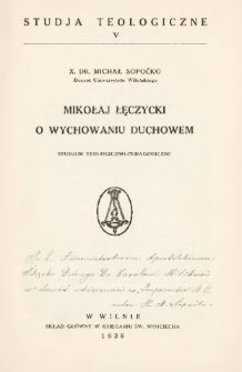 seria: Studia Teologiczne (Wilno), t. 5 ; Na początku wklejona odbitka z "Ateneum Wileńskiego". Rocznik XIII. 1938 r. zat. "Data śmierci Mikołaja Łęczyckiego"