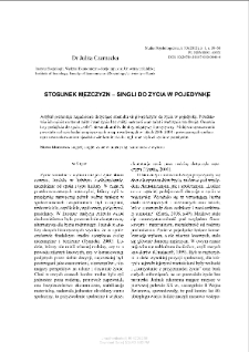 Artykuł prezentuje zagadnienie dotyczące stosunku singli-mężczyzn do życia w pojedynkę. Przedstawia ich opinie na temat zalet i wad życia bez stałej partnerki oraz zalet i wad życia we dwoje. Omawia trzy podejścia do życia ?solo?: stosunek ambiwalentny, negatywy i pozytywny. ; Niniejsze opracowanie powstało na bazie badań empirycznych przeprowadzonych w latach 2006-2008 i poświęconych społecznym uwarunkowaniom zjawiska wielkomiejskich singli oraz stylowi życia w pojedynkę.
