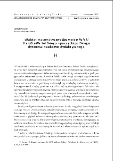 Traktat matematyczny "Geometra Polski" opublikowany w latach 1683-1686 utożsamiany jest z początkami polskiego dyskursu naukowo-dydaktycznego. Jego autor, Stanisław Solski, był jezuitą, który czerpał z obfitego już w XVII w. archiwum nauki. Jednocześnie godny podkreślenia jest fakt, iż traktat, przybliżając osiągnięcia ówczesnej nauki, wskazywał na ich wymiar praktyczny, uświadamiał rzemieślnikom, mierniczym, budowniczym, jak język abstrakcji matematycznej opisuje sferę praktyki gospodarczej, pozwala nią zarządzać. ; W pierwszej części artykułu autor koncentruje się na strukturze traktatu, jego języku. Druga partia szkicu przynosi rozważania na temat kontraktu komunikacyjnego zawiązanego między autorem "Geometry Polskiego" a jego odbiorcami, który jest impulsem pragmatycznym przesądzającym o kształcie strukturalnym i stylistyczno-językowym dzieła.