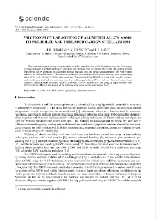 | Friction spot lap joining of aluminum alloy AA6061 to pre-holed and threaded carbon steel AISI 1006 | 6 lip 2023 |