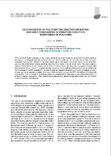 With the tools of modern metrology we can measure almost all variables in the phenomenon field of a working machine, and many of the measured quantities can be symptoms of machine conditions. On this basis, we can form a symptom observation matrix (SOM) intended for condition monitoring and wear trend (fault) identification. On the other hand, we know that contemporary complex machines may have many modes of failure, called faults. ; The paper presents a method of the extraction of the information about faults from the symptom observation matrix by means of singular value decomposition (SVD), in the form of generalized fault symptoms. As the readings of the symptoms can be unstable, the moving average of the SOM is applied with success. An attempt to assess the diagnostic contribution of a primary symptom is made, and also an approach to assess the symptom limit value and to connect the SVD methodology with neural nets is considered. ; Finally, a condition forecasting problem is discussed and an application of grey system theory (GST) to symptom prognosis is presented. These possibilities are illustrated by processing data taken directly from the machine vibration condition monitoring area.