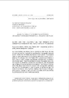For three decades, the fertility rate in Poland has been below the level of simple replacement of generations, and long-term demographic forecasts do not indicate any immediate improvement in this respect. The measures taken in recent years as part of a pro-family policy have proved to be ine?ective. This also applies to the "Family 500+" programme introduced in 2016. After an initial increase noted between 2016 and 2017, the fertility rate dropped again. ; The article attempts to answer the question as to why the programme, de?ned as a pronatalistic one, does not yield the expected results despite the announcements of its creators. The analysis of the causes of this phenomenon takes into account both demographic conditions, resulting from the decreasing number of women of reproductive age, and socio-cultural factors, including those resulting from the second demographic transition, changes in family and fertility models, which are re?ected in preferences and attitudes towards procreation.