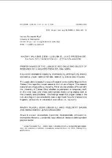 Przedmiotem rozważań podjętych w niniejszym opracowaniu było określenie zakresu badań prowadzonych przez zielonogórskich językoznawców w obrębie nazewnictwa Ziemi Lubuskiej. Materiał badawczy pracy stanowią prace polonistów związanych z zielonogórską uczelnią, zatrudnionych w niej na stałe lub też w określonym czasie. ; W tym drugim wypadku brano pod uwagę tylko te dokonania badaczy, które powstały w czasie ich zatrudnienia w Zielonej Górze. Analiza wykazała, że nazwy własne Ziemi Lubuskiej stanowiły i nadal stanowią jeden z istotnych obszarów badawczych zielonogórskich lingwistów, przy czym do dziedzin onomastyki cieszących się największym zainteresowaniem należy zaliczyć toponimię.