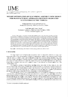 The aim of this study is to determine the ideal stress distribution for a multi-leaf spring assembly using finite element analysis. Furthermore, the topology enhanced model, based on associate load is included in this research work. This work is carried out by considering two different techniques involving design for manufacturing (DFM) after the attainment of results from topology optimization. ; The vehicle`s overall load is bear by the main leaf spring and graduated leaves are used to support the main leaf thus the prospective techniques intend to create holes across the graduated leaves and cut a custom slot along the graduated leaves of the spring assembly. The disclosure manifest that it is feasible to lessen the leaf spring assembly weight in order to create a lightweight, structurally sound design and reduce energy consumption that can be employed to heavy-duty commercial electric vehicles. The suggested techniques promisingly anticipate that a significant proportion of weight deduction of about 3.4 percent with holes and 17.34 percent with slots can be attained in multi-leaf spring assembly.