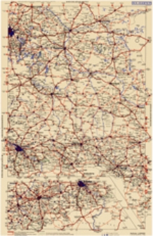 Poniżej mapy podstawowej znajduje się uzupełnienie obejmujące sieć dróg lączących Drezno z Chemnitz i Zwickau. - Obie mapy w skali 1: 500 000. - Poniżej dolnej ramki legenda mapy. Na odwrocie mapy plany 16 miast: Kostrzyna, Frankfurtu, Cottbus, Spremberg, Bautzen, Drezna, Gorzowa Wlkp., Gubina, Zgorzelca, Zittau, Krosna, Zielonej Góry, Głogowa, Legnicy, Jeleniej Góry i Wałbrzycha oraz informacje o regionie. - Mapa składana. ; Mapa drogowa B.V.- Karte 7 opracowana przez Benzol-Verband w Bochum, wydana przed 1936 r. - Mapa stanowi kolejny 7 element większego wydawnictwa przedstawiającego połączenia drogowe na terenie Niemiec. - Edycja nr 7 zawiera mapę połączeń na terenie Brandenburgii. ; Na mapie zaznaczono miejscowości i połączenia drogowe między nimi z oznaczeniem kilometrowym odległości, stacje benzynowe, sieć wodną. - Powyżej górnej ramki tytuł mapy: "B.V.-Karte-7" (po prawej stronie), informacja: "Herausgegeben Benzol-Verband - Nachdruck Verboten" (po lewej stronie).