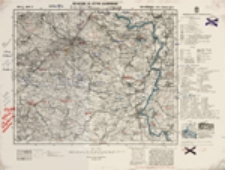 Na prawym marginesie mapy legenda. - Tutaj także stemple kolejnych posiadaczy mapy (anulowane): Zakładu Antropogeografii Uniwersytetu Warszawskiego, Instytutu Geograficznego U.W. ; Podobne stemple na odwrocie mapy. - Na mapie w wersji z 1933 roku dodrukowano czerwoną barwą zmiany nazewnictwa z późniejszego okresu o czym informuje zapis pod dolną ramką: "Nazwy zmienione w r. 1939 na podstawie mapy niemieckiej 1:1000 000 z r. 1937". Na mapie odręczne zapiski w jęz. polskim. ; Na mapie zaznaczono miejscowści, sieć dróg bitych, kolei, zalesienie, uprawy (np. winnice), rzeki, jeziora itp. - Na górną ramką informacja: "Wyłącznie do użytku służbowego" i dodatkowy odcisk pieczętny: "Do użytku służbowego". - Poniżej dolnej ramki określenie skali, informacje w sprawie kolejnych wersji druku mapy oraz szczegóły w sprawie odchylenia magnetycznego. ; Mapa topograficzna Zielonej Góry i okolic z 1933 roku, aktualizowana w 1939 roku. - Mapa wydana w Warszawie do celów wojskowych przez Wojskowy Instytut Geograficzny. - Mapa w języku niemieckim z polskimi objaśnieniami i legendą. - Tytuł mapy: "Grünberg i. Schl. (Zielona Góra)" nad górną ramką.