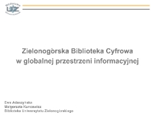 | Zielonogórska Biblioteka Cyfrowa w globalnej przestrzeni informacyjnej - prezentacja multimedialna | 31 maj 2023 |