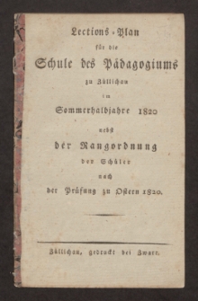 nebst der Rangordnung der Schüler nach der Prüfung zu Ostern 1820