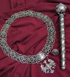 Insygnia to atrybuty władzy oraz godności i dostojeństwa rektora. Są one symbolicznym podkreśleniem niezależności i autonomii wspólnoty uniwersyteckiej, ale także władzy rektora jako przełożonego społeczności akademickiej. ; Do insygniów należą: łańcuch, berło i pierścień: ; - łańcuch to symbol powagi i godności pełnionego urzędu oraz trwałości i więzi łączących rektora z uniwersytetem; ; - berło to oznaka władzy rektora w uniwersytecie, ale też symbol mądrości; ; - pierścień to symbol zaślubin rektora ze społecznością akademicką, a także wierności ideałom akademickim i zawodowym. ; Insygnia przynależne są władzy uniwersyteckiej - rektorowi, prorektorom i dziekanom, wykorzystywane są podczas najważniejszych uniwersyteckich wydarzeń dla podkreślenia ich uroczystego charakteru. ; Insygnia wykonane są ze srebra, a kamienie w ogniwach łańcucha to zielone nefryty. Nefryty zdobiły również insygnia Politechniki Zielonogórskiej, a wcześniej Wyższej Szkoły Inżynierskiej. Nawiązująca do nefrytów zieleń o podobnym odcieniu jest oficjalnym kolorem Uniwersytetu. ; Elementy logo uczelni stanowią: napis Uniwersytet Zielonogórski oraz litery UZ zespolone z wizerunkiem piastowskiego orła. Przy tworzeniu znaku autorka czerpała inspirację z symboliki uniwersytetów, a ponieważ orzeł jest podstawowym elementem symbolu większości uczelni, autorka sięgnęła po wizerunek orła piastowskiego z czasów Kazimierza Wielkiego, z pieczęci majestatycznej króla z 1336 roku, który dziś znajduje się w Muzeum Narodowym w Krakowie. Logo uczelni i orzeł stanowią elementy łańcucha rektora.
