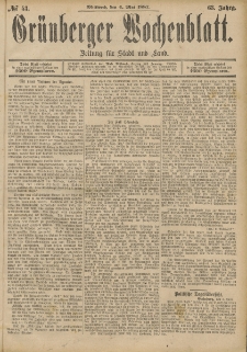 | Grünberger Wochenblatt: Zeitung für Stadt und Land, No. 53. (4. Mai 1887) | 26 kwi 2022 |