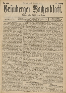 | Grünberger Wochenblatt: Zeitung für Stadt und Land, No. 146. (7. December 1887) | May 2, 2022 |