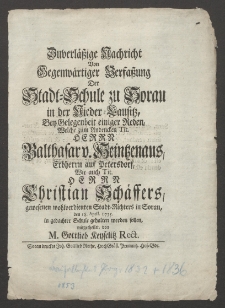 Welche zum Andencken ... den 18. April. 1735. in gedachter Schule gehalten werden sollen