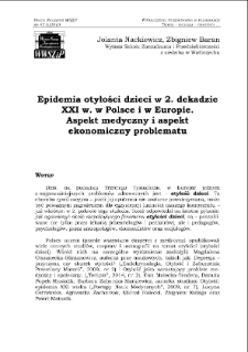 Narastającym problemem zdrowotnym w XXI w. jest fakt, iż z otyłością zmaga się coraz większa liczba dzieci na świecie. Na podstawie populacyjnych badań dzieci z 2014 r. stwierdzono, że minimum 4,4 mln (a może nawet i ok. 5,0 mln) europejskich dzieci było wówczas otyłych. ; Autorzy przedstawiają w studium m. in. takie problemy, jak: otyłość dziecięca w Europie (w świetle danych liczbowych), otyłość dzieci i jej skutki - aspekt medyczny problematu, otyłość dzieci a efektywność przyszłego polskiego i europejskiego kapitału ludzkiego - aspekt ekonomiczny problematu.