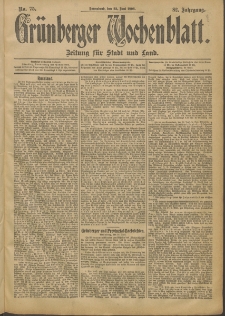 | Grünberger Wochenblatt: Zeitung für Stadt und Land, No. 75. (23. Juni 1906) | Jun 20, 2022 |