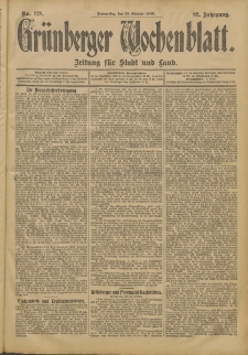 | Grünberger Wochenblatt: Zeitung für Stadt und Land, No. 128. (25. Oktober 1906) | 20 cze 2022 |