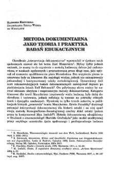 Title: Metoda dokumentarna jako teoria i praktyka badań edukacyjnych (dokument dostępny po zalogowaniu tylko dla osób z dysfunkcją wzroku)