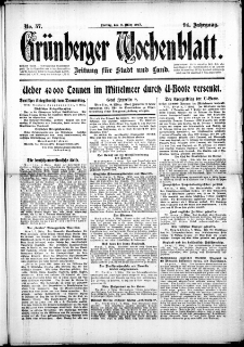 | Grünberger Wochenblatt: Zeitung für Stadt und Land, No. 57. ( 9. März 1917 ) | Dec 7, 2022 |