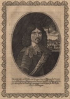 miedziorytniczy portret w obramowaniu drzeworytowym ; grafika pochodzi z dzieła: Theatrum Europaeum, T. 5 ; 19,0 x 13,3