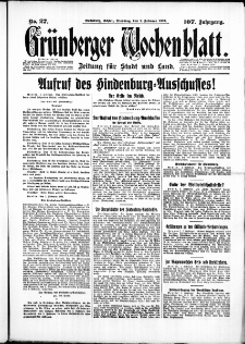| Grünberger Wochenblatt: Zeitung für Stadt und Land, No. 27. ( 2. Februar 1932) | 27 lut 2023 |