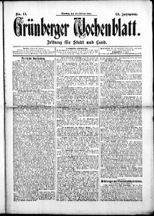 | Grünberger Wochenblatt: Zeitung für Stadt und Land, No. 18. (10. Februar 1914) | 12 sty 2023 |