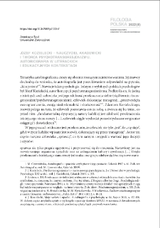 The article presents this Polish psychologist as a belles-lettres lover. It portrays a professor who did use not only literary works during his lectures but also wrote such texts on his own. The article points out that his autobiography contains direct or modified quotes, paraphrases, and references to literary achievements. ; This fact reveals Kozielecki`s broad knowledge of literature. Classical literature was very close to his heart. The author of the sketch shows some of the stylistic values of Kozielecki`s way of expression (such as irony, contrast, synecdoche or a punchline) and encourages us to see his sapiential value as well.