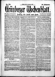 | Grünberger Wochenblatt: Zeitung für Stadt und Land, No. 225. (24. September 1920) | 17 mar 2023 |