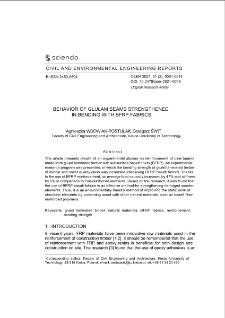 The article presents results of an experimental studies on reinforcement of pine beams made from glued laminated timber with subsurface basalt fibers (BFRP). An experimental research program was presented, in which the bending strength of glued laminated timber of middle and lower quality class was increased after using BFRP basalt fabrics. ; Thanks to the use of BFRP reinforcement, an average load capacity increased by 47% and stiffness by 6% in comparison to non-reinforced elements. Based on the research, it was found that the use of BFRP basalt fabrics is an effective method for strengthening damaged wooden elements. Thus, it is an environmentally friendly method of improving the static work of structural elements by combining wood with other natural materials such as basalt fiber reinforced polymers.