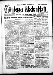 | Grünberger Wochenblatt: Zeitung für Stadt und Land, No. 221. (19. September 1928) | Apr 17, 2023 |