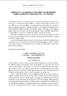 | Meeting on the decline of the urban House Sparrow "Passer domesticus": Newcastele 2011 (10-11 March) | May 23, 2023 |