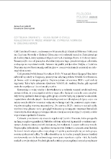 | Czytelnia Dramatu - kilka słów o cyklu realizowanym przez WiMBP im. Cypriana Norwida w Zielonej Górze | 19 sty 2024 |
