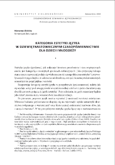 Przedmiotem rozważań w niniejszym artykule jest ustalenie, czy i w jakim zakresie problem estetyki języka był obecny na łamach XIX-wiecznych czasopism dla dzieci i młodzieży oraz jakie wykładniki zachowań językowych w ocenie redaktorów tekstów prasowych uznawane były za estetyczne. ; Teoretycznym punktem wyjścia dla przeprowadzonych analiz było założenie, że kategoria "estetyki języka" istnieje w powszechnej świadomości użytkowników języka, a jej zakres pojęciowy jest przede wszystkim wyrazem stosunku do języka ojczystego i emocjonalnej postawy wobec niego każdego, kto komunikuje się za pomocą słów. Postawy te zaś kształtowane są społecznie oraz warunkowane kulturowo i historycznie. ; Analiza materiału (szczególnie periodyków: "Rozrywki dla Dzieci" (1824-1828), "Dziennik dla Dzieci" (1829), "Tygodnik dla Dzieci" (1830), lwowski "Przyjaciel Dzieci" (1851-1856), warszawski "Przyjaciel Dzieci" (1861-1868)) pokazała, że propagowanie wrażliwości na piękno języka i estetykę słowa było priorytetem działań redaktorów i ich współpracowników w XIX-wiecznych czasopismach dla dzieci i młodzieży. ; Uwarunkowane to było kształtowaną w ówczesnym społeczeństwie postawą troski o język ojczysty i ideą doskonalenia i czystości polszczyzny, która miała być nie tylko dowodem niezaprzeczalnej wartości narodu, ale też gwarantem jego istnienia i przetrwania.