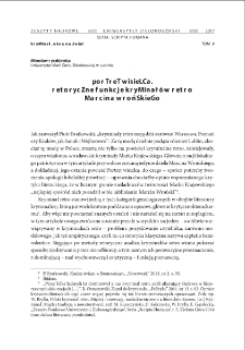 "The retro crime novel" is one of the categories in the area of crime fiction that has been frequently described, mainly by literary criticism. Thus, not to repeat the already known assumptions, the article pays attention predominantly to one problem, specifically addressed in retro crime novels, namely: attracting the reader, both the model one and the empirical one, which is defined by classical rhetoric as "captatio benevolentiae". ; Making use of rhetorical methods, the analysis of retro crime novels presents ways of winning over the addressee as well as the novels` persuasive function, exhibiting the domination of the cognitive function over the other functions ? didactic and aesthetic. Among the most important factors, already known to Aristotle, which determine the influence upon the addressee (persuasion), seems to be "identification". The example of retro crime novels is provided mainly by Marcin Wroński`s novels set in Lublin, especially his latest, "Portret wisielca" ("The Portrait of a Hanged Man").