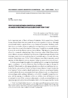 Coined by French literary theorist Gerard Genette, the term "paratext" describes any number of elements that frame a work of literature, including indexes, illustrations, tables of contents, as well as typographical elements such as the spacing between words and textual margins. This essay begins by exploring how, historically, such paratextual spaces have Server as sites for literary protest and subversion of racist and sexist ideologies, in order to bring focus to American author Tillie Olsen`s innovative use of such elements in her short fiction. ; This essay specifically analyzes Olsen`s use of paratextual spacing and typography in her short story "O Yes" (1961) to demonstrate how such formal elements serve as a mimetic reflection of the division between black and white people in the mid-century 20th century. ; In short, Olsen employs marginal aspects of the text to consider and reflect upon the marginalization of African-Americans during the time the story was published. Olsen`s irregular and non-standard spacing between lines, words, and paragraphs reflects the gaps and separation between people living in America and displays the cacophony of voices present in such a divided landscape.