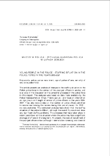 The article presents an analysis of changes in the staffing situation in the Polish police force in the context of the youngest officers in service, and is a voice in the discussion on the personnel processes in the police force in this respect. The analyses were based on data made available by the Police Headquarters at https://dane.gov.pl/ and focus on information on age groups and length of service of police officers in the years 2005-2021. They also include data on the number of police officers admitted to service and leaving the service during this period (except for 2012 - no data available). ; The conducted analyses have shown that the staffing situation of the police is difficult, although the overall figures do not show any significant staffing problems. The processes that have taken place in recent years have led to a situation where the police may face a significant shortage of officers in the long term. At present, the level of recruitment of the youngest officers is low (although it seems to be increasing) and does not guarantee that the potential staff shortages, resulting from the fact that an increasing proportion of the total number of police officers are older officers who have pension rights, will be made up for.
