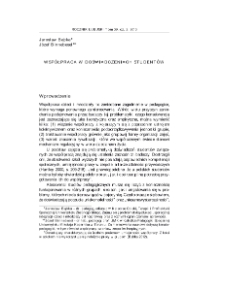 W artykule przedstawiono część wyników badań i testów diagnostycznych dotyczących doświadczeń studentów Uniwersytetu Zielonogórskiego związanych ze współpracą (opłacalność współpracy i rywalizacji w chwili obecnej, role najczęściej pełnione podczas pracy w grupie, pozytywne i negatywne doświadczenia studentów podczas pracy w grupie, ocena umiejętności współpracy). ; Badania stanowią podstawę do dyskusji, która pokazuje kierunek zmian w procesie edukacyjnym. Autorzy starali się udowodnić, że istnieje potrzeba przygotowania młodzieży do współpracy. Taka konieczność wynika z wyzwań współczesnego świata i wpisuje się w modelowe efekty kształcenia uniwersyteckiego opracowane przez Ministerstwo Szkolnictwa Wyższego.