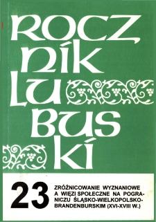 Title: Rocznik Lubuski (t. 23, cz. 1): Zróżnicowanie wyznaniowe a więzi społeczne na pograniczu śląsko-wielkopolsko-brandenburskim (XVI-XVIII w.)