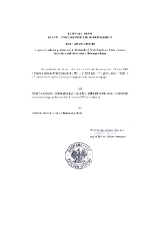 Tytuł: Uchwała nr 309 Senatu Uniwersytetu Zielonogórskiego z dnia 4 czerwca 2014 roku w sprawie nadania profesorowi dr. Richardowi Wielebinskiemu tytułu doktora honoris causa Uniwersytetu Zielonogórskiego