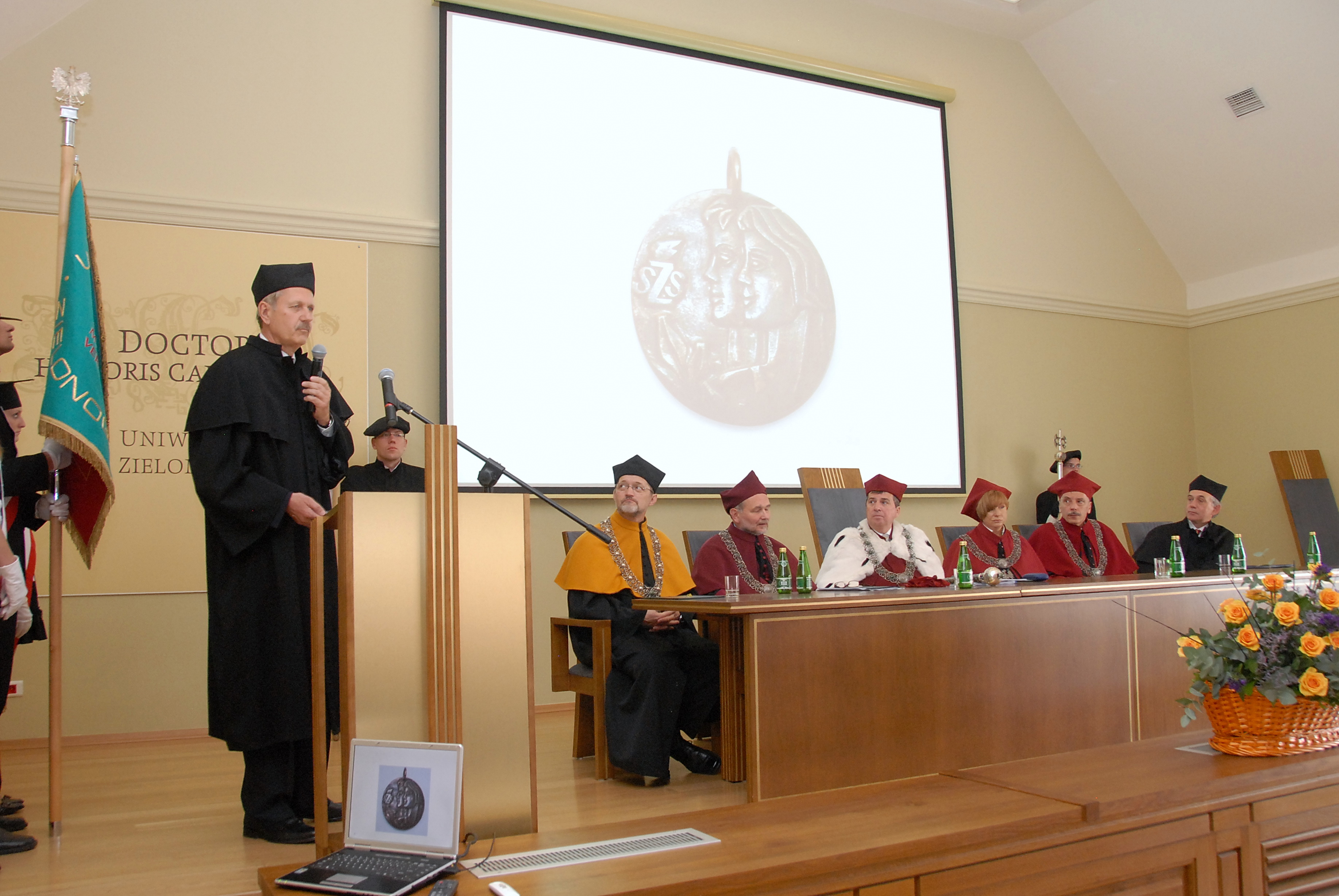 Uroczystość odbyła się 5 czerwca 2009 r. w auli rektoratu Uniwersytetu Zielonogórskiego ; Prof. dr hab. inż. Jan Węglarz wygłasza okolicznościowy wykład, zatytułowany "Jak powstały badania operacyjne" ; Za stołem prezydialnym miejsca zajmują od lewej: dr hab. inż. Andrzej Pieczyński, prof. UZ, dziekan Wydziału Elektrotechniki, Informatyki i Telekomunikacji; prof. dr hab. inż. Tadeusz Kuczyński, prorektor ds. Nauki i Współpracy z Zagranicą; prof. dr hab. Czesław Osękowski, rektor Uniwersytetu Zielonogórskiego; dr hab. Wielisława Osmańska-Furmanek, prof. UZ, prorektor ds. Jakości Kształcenia; dr hab. Longin Rybiński, prof. UZ, prorektor ds. Studenckich; prof. dr hab. inż. Józef Korbicz, promotor przewodu