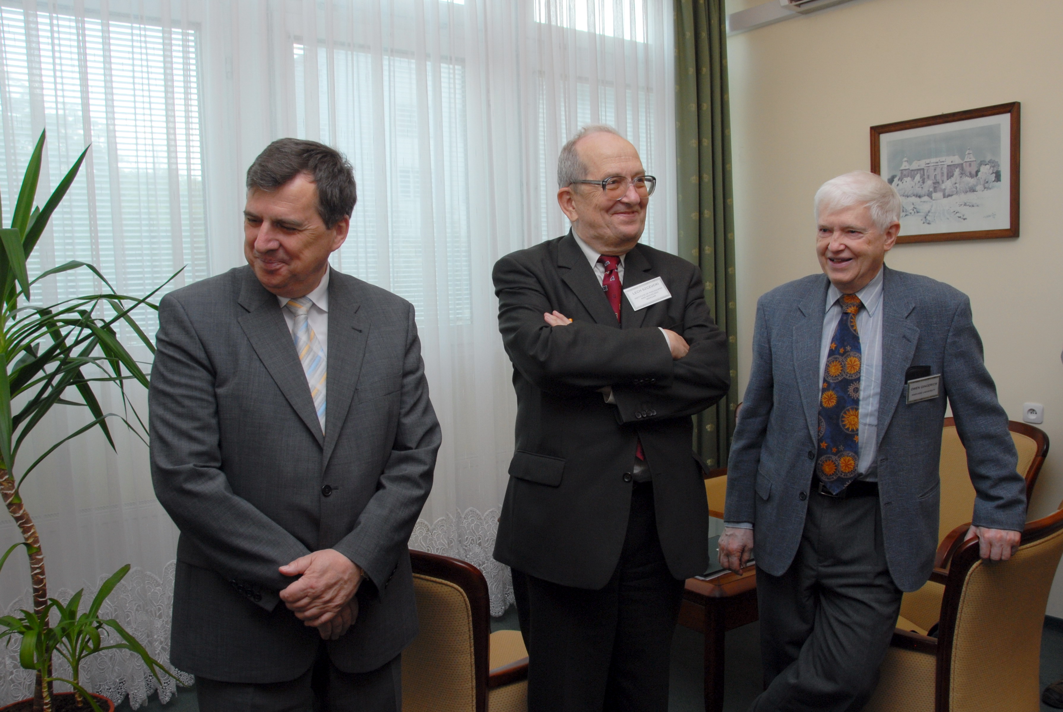 Uroczystość odbyła się 23 czerwca 2008 r. w auli Uniwersytetu Zielonogórskiego ; Spotkanie w gabinecie JM Rektora Uniwersytetu Zielonogórskiego. ; Od lewej: prof. Czesław Osękowski, rektor Uniwersytetu Zielonogórskiego; prof. Lech Szczucki, Instytut Filozofii i Socjologii PAN, recenzent przewodu; prof. Owen Gingerich, Harvard University