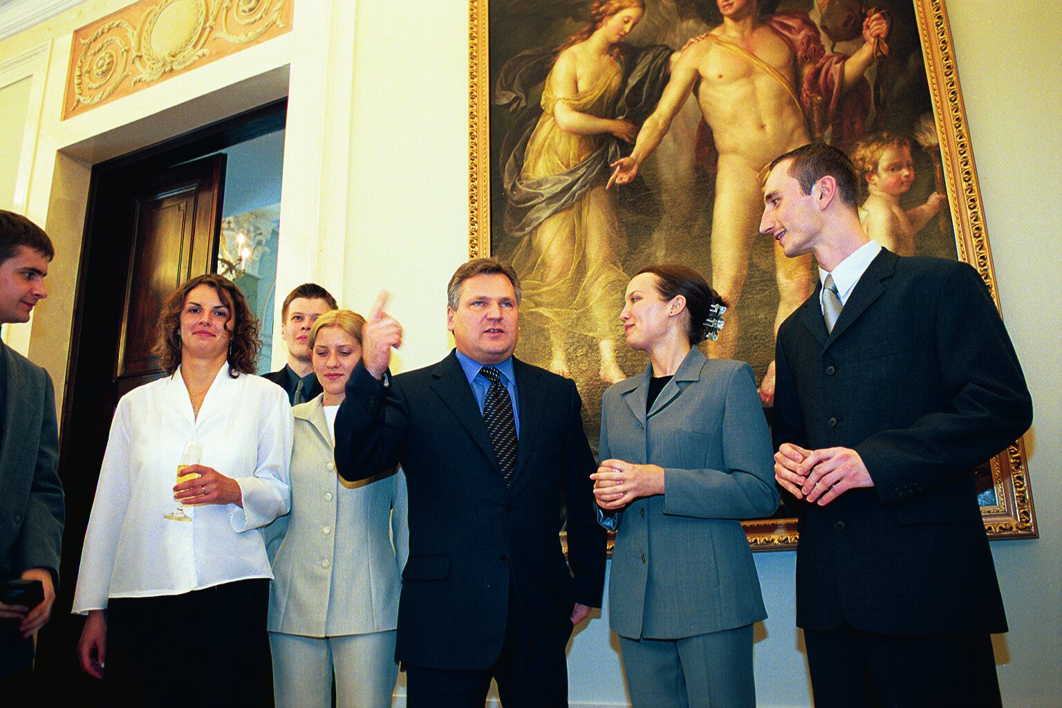 Tytuł: Aleksander Kwaśniewski, Prezydent Rzeczypospolitej Polskiej ze studentami zielonogórskich uczelni podczas uroczystego spotkania z okazji podpisania ustawy o utworzeniu Uniwersytetu Zielonogórskiego (2)
