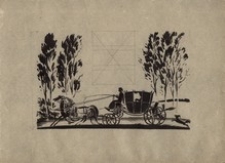 rysunek tuszem ; 25 x 35 ; il.: 11: Jadąca kareta z siedzącym z tyłu Kominiarczykiem